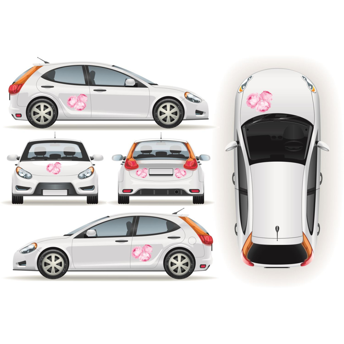 Fotó hatású három rózsás autó matrica, virágos rózsaszín autómatrica