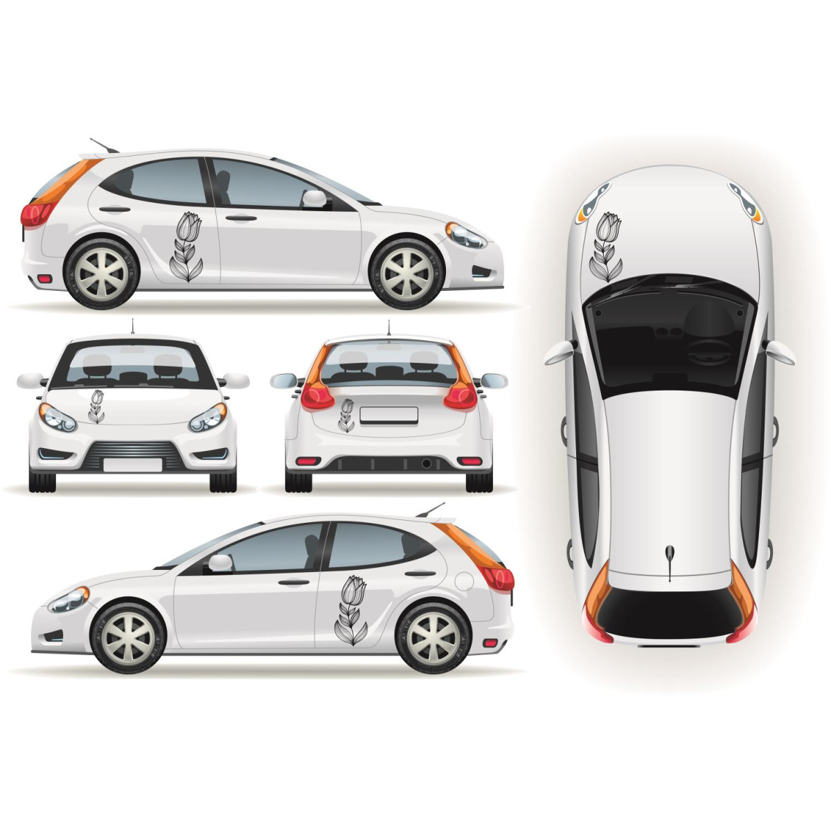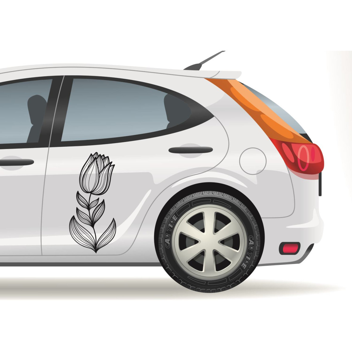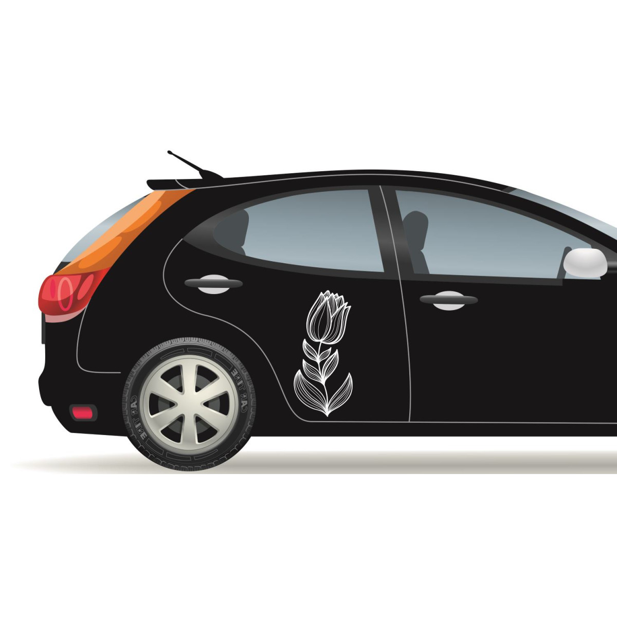 Tulipános autó matrica, fekete vagy fehér színű tulipán mintás autómatrica