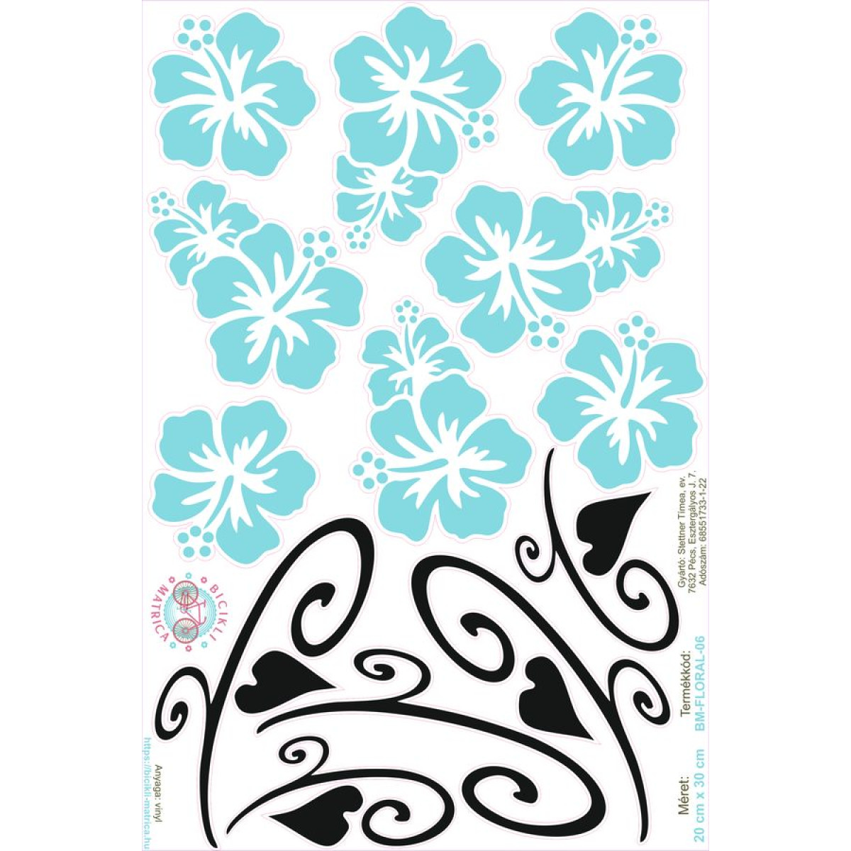 Türkizkék Hawaii virágos bicikli matrica