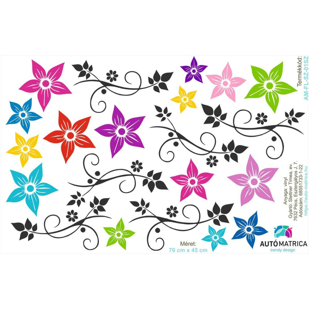 Egyes elemek (virágok, indák) külön külön leszedhetők a fóliáról és szabadon elhelyezhető az autón.
