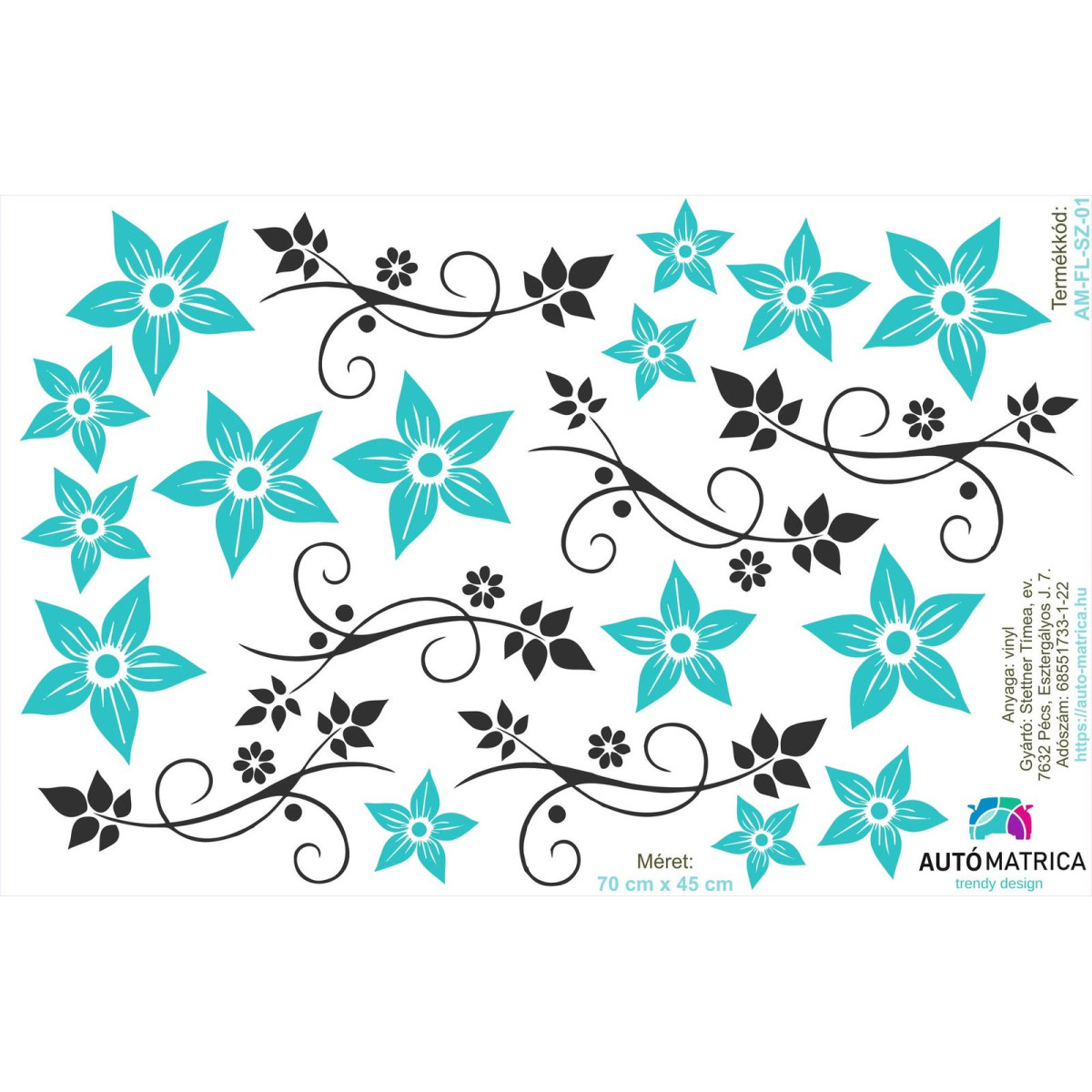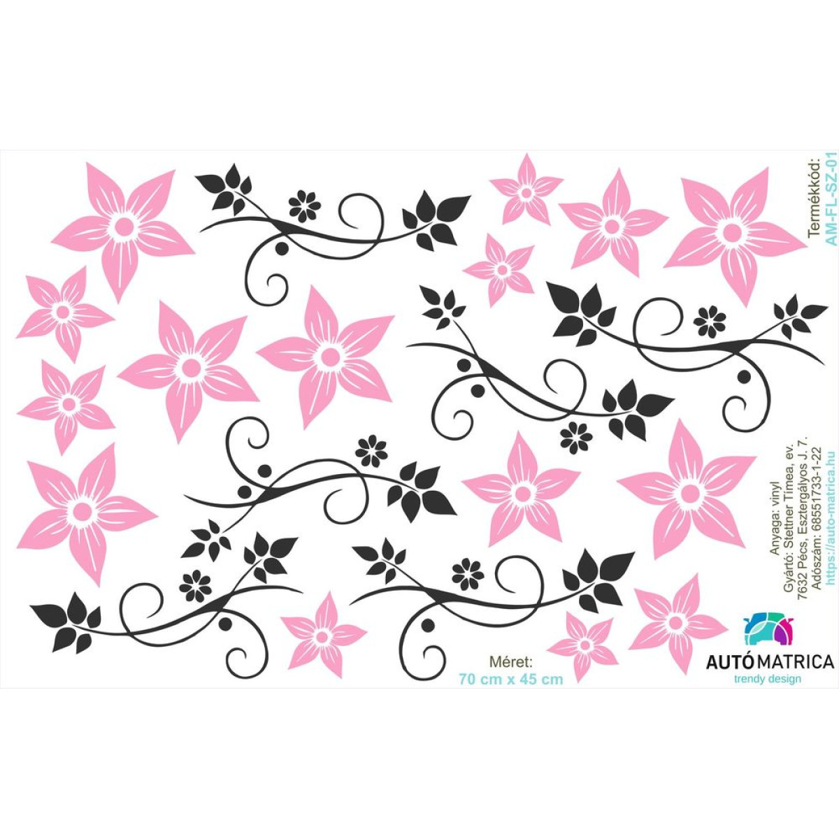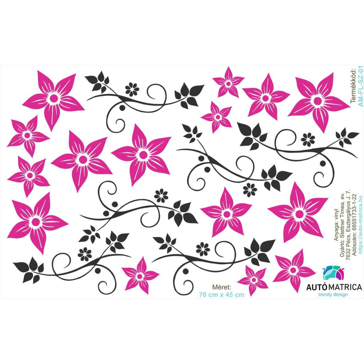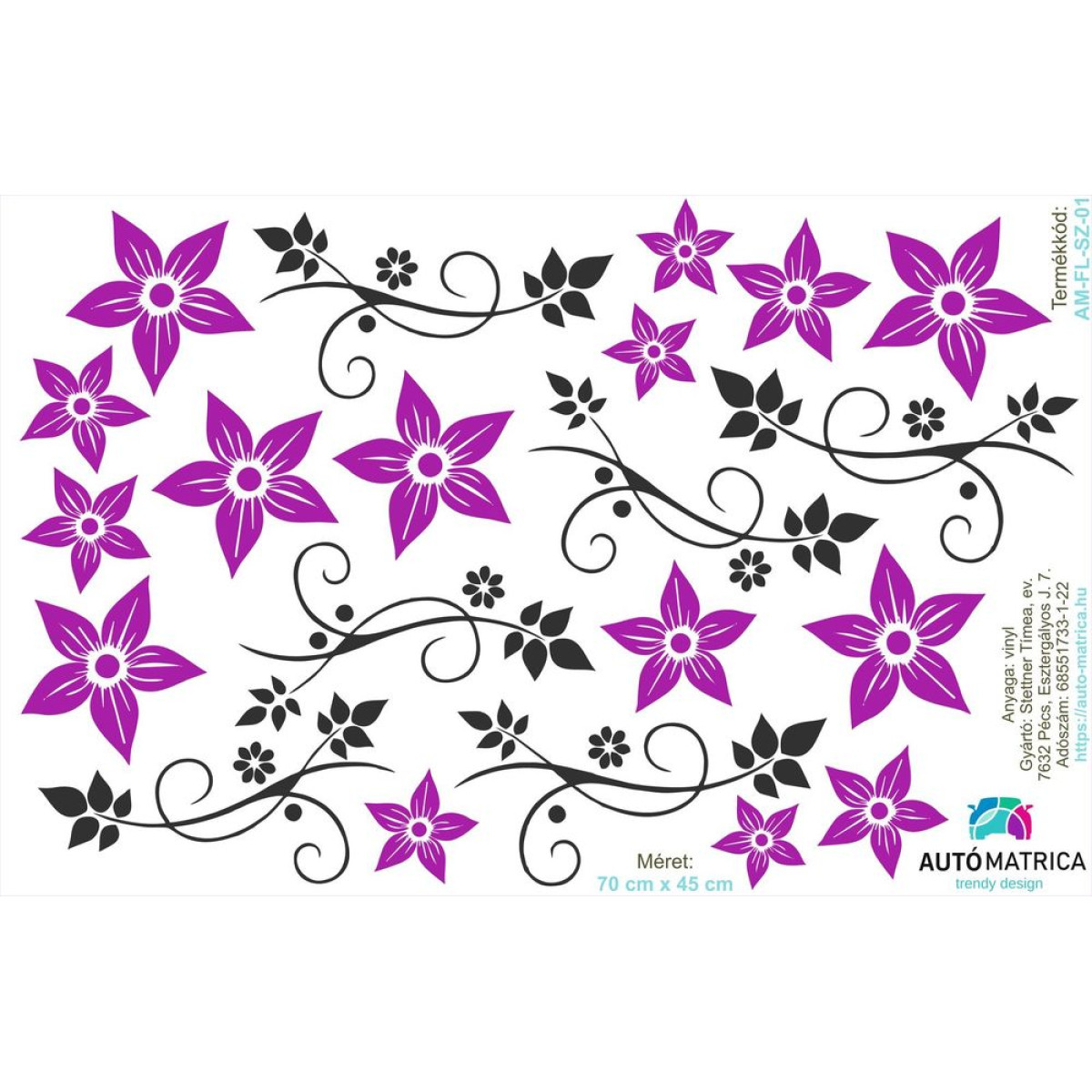 Egyes elemek (virágok, indák) külön külön leszedhetők a fóliáról és szabadon elhelyezhető az autón.