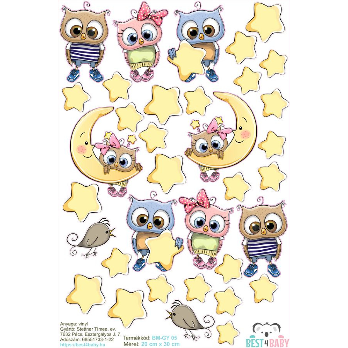 Gyermek bicikli matrica, bagoly és csillag mintás gyerek kerékpár matrica